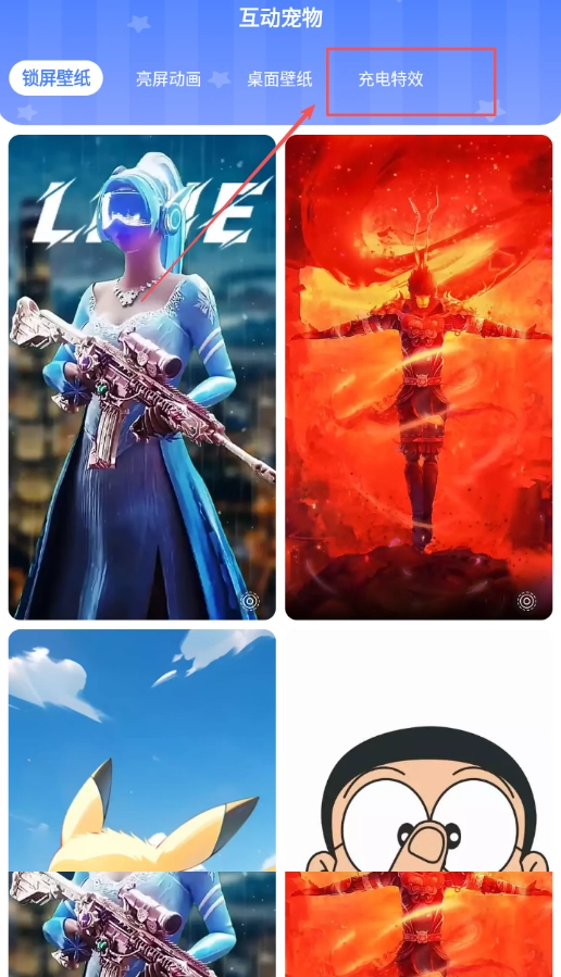 2、找到充电特效入口点击进入详细设置页面,浏览可选的充电特效样式列表展示。