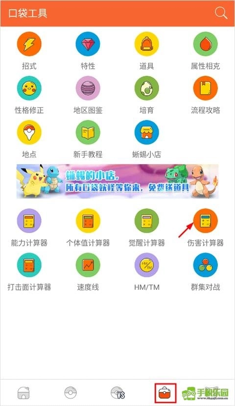 1、在 “口袋工具” 模块中选择 “伤害计算器”;