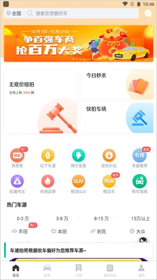 完成选择后便会进入应用主界面,在这里能够查找心仪的车辆或是参与竞拍的车辆。