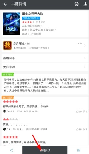 当你进入书籍的具体页面后,若该小说存在读者的评价内容,你就能够在此处进行浏览。
