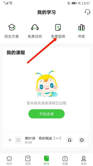 进入我的学习界面,选择上方“免费题库”选项