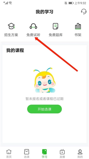 进入我的学习界面,选择上方“免费试听”选项