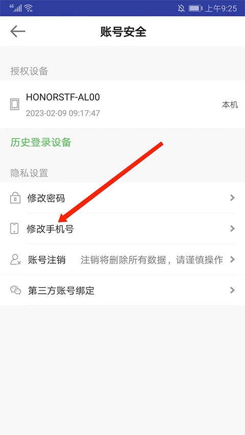 进入账号安全界面,选择“修改手机号”选项