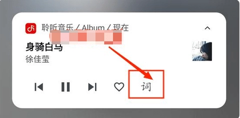 2.向下滑动屏幕打开通知栏,在显示“聆听音乐”的通知区域里,找到并点击歌词按钮。