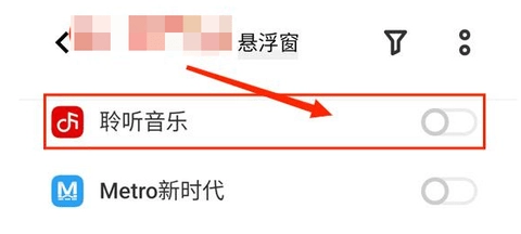 3.在弹出的悬浮窗界面里,开启“聆听音乐”的悬浮窗显示权限,之后重新进行步骤2的操作。