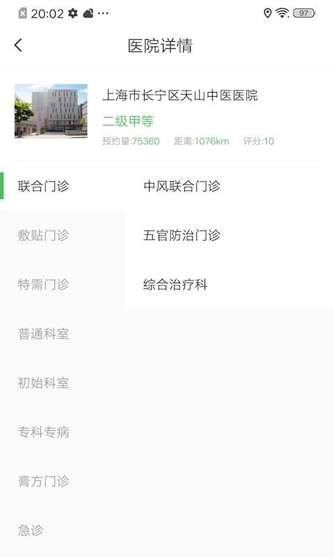 医院的详细信息可以轻松查询到,还能浏览该医院的科室设置。