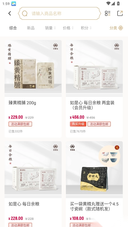 在商城中心能看到不少养生类商品,用户可以查找并购买所需的商品。