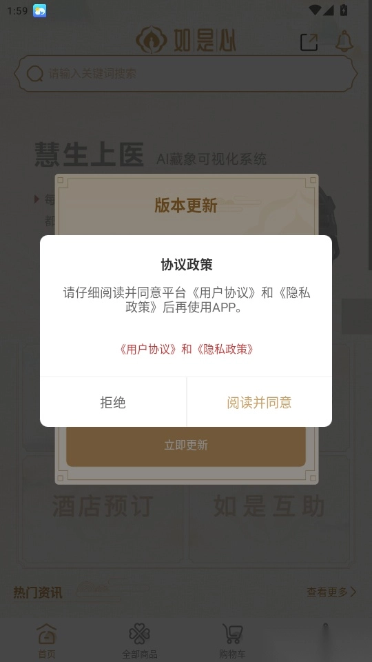 打开软件阅读“协议政策”点击“阅读并同意”进入