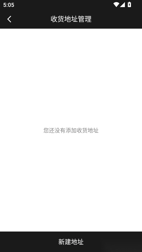 接下来进入“收货地址管理”菜单页面,点击底部的“新建地址”功能按钮进入即可。