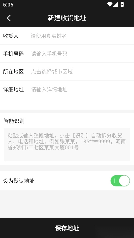 最近依次填写收货人信息、手机号码、所在地区以及详细地址后,点击“保存”按钮即可完成操作。