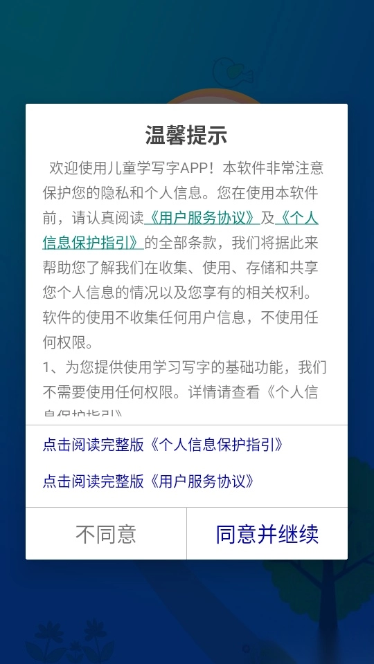 首先打开软件,阅读“温馨提示”内容后,点击“同意并继续”按钮,即可进入程序。