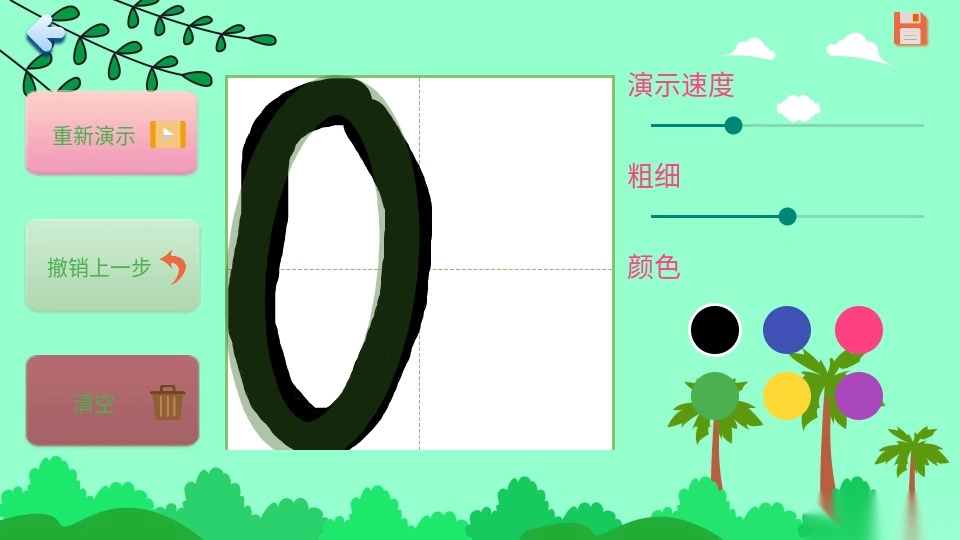 最后进入数字书写的演练界面,借助滑动按钮就能随意调整演示速度了