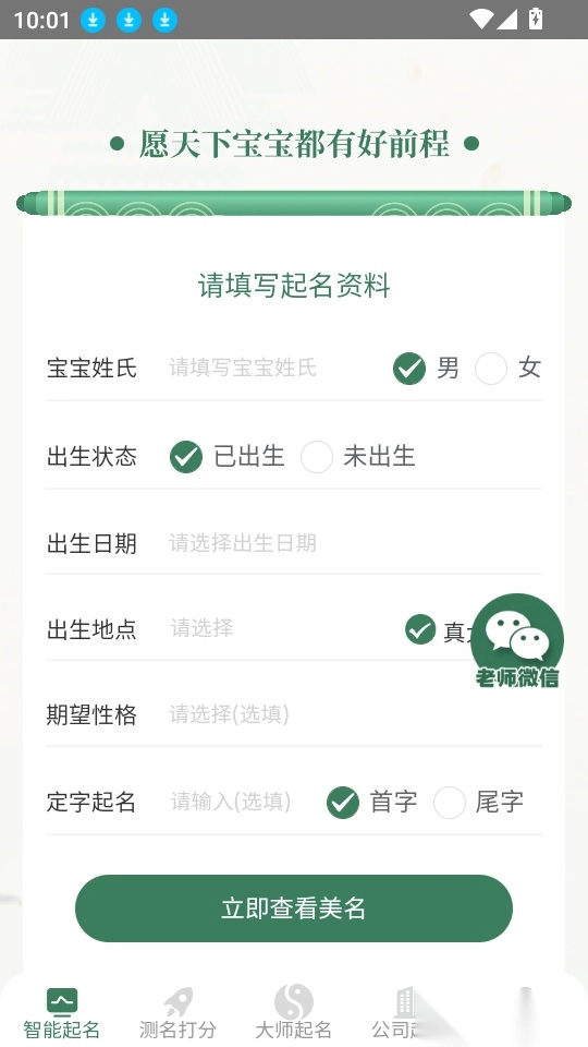 周易测名字打分是一款专注于专业起名与测名服务的应用软件,为用户提供全方位的测名打分功能。用户可以对自己拟定的名字进行多维度分析,获取详细的测试解读,查看科学权威的分析结果及具体详情,从而全面评估名字的优劣,轻松掌握其分数与潜在趋势。平台海量名字库资源,涵盖丰富的国学经典名字文化,助力用户高效起名——只需输入姓氏即可快速生成候选名,并支持精准筛选高分优质名字。此外,软件还配备专业国学大师团队,为用户提供一对一的定制起名服务,打造专属好名。有需求的用户不妨即刻前往本站体验!