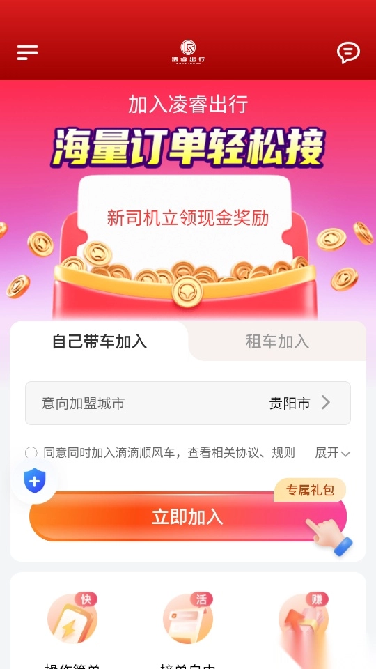 凌睿出行网约车司机端是一款为网约车司机打造的接单赚钱工具,能助力司机便捷接单:支持实时注册账户入驻平台,操作简单易上手,可快速承接订单;平台提供海量订单资源,方便司机多渠道接单,稳定增收。此外,软件设有专属抢单大厅,司机能实时抢高价订单,系统还会智能优先派单,进一步提升收入;司机也可自定义接单偏好,设置后随心保存,出行更轻松。有需要的司机不妨来本站体验使用!