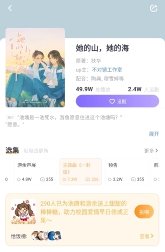 4、新剧抢先听:饭角App第一时间同步最新上线的广播剧,追更新剧就用它