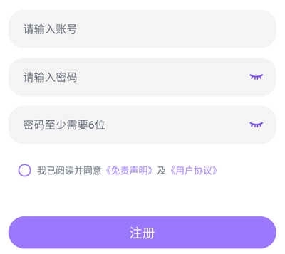 3、输入账号(用户名)、密码,再次输入密码,然后点击我已阅读并同意前面的小圆圈(ps:用户名至少6位数,且均为数字)。