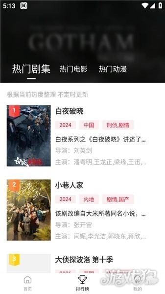 3、排行榜页面定期更新,显示当下热门剧集。