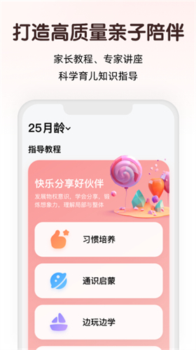 5、与此同时,平台会给出育儿方面的建议与指导,对于刚刚开启早教之旅的新手家庭而言尤为适用,能够帮助他们缓解教育焦虑,提高启蒙效率。