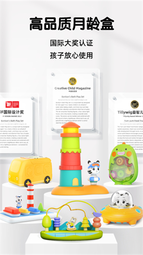 3、进入商城页面,挑选并激活对应的月龄盒,其中涵盖配套绘本、玩具以及学习卡片。