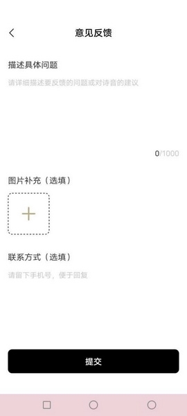 “诗音”这款软件,能让你在任何时间、任何地点进行诗词创作与朗诵。它专注于为众多诗词创作及朗读爱好者打造一个展示自我、相互交流的平台。期望让朗读成为流行风尚,使生活充满诗意与远方!