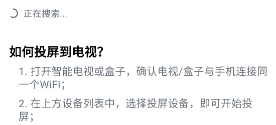 2. 轻点右上角的TV投屏标识,随即开启对投屏设备的搜索。