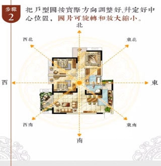 3、将户型图依据实际方向调整到位,确定好中心位置,同时图片支持选择以及放大缩小操作。