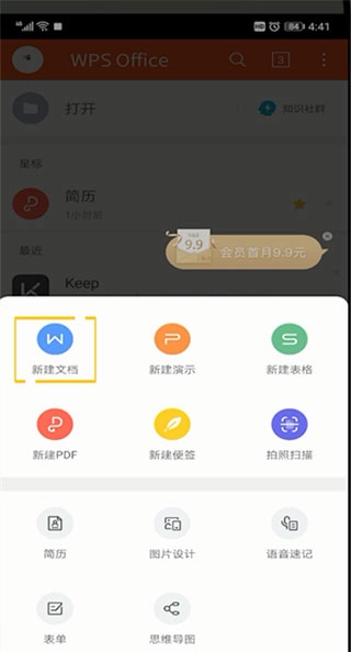 2、在弹出的界面中,选择新建文档;