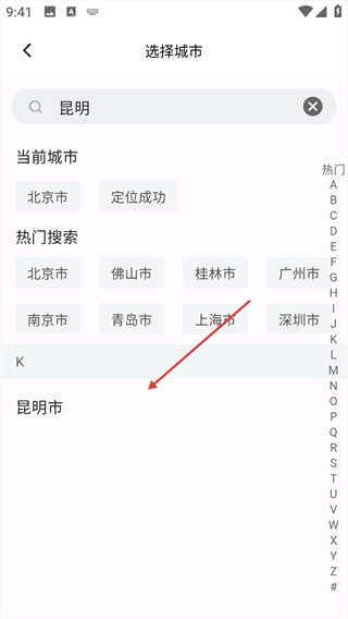 3、找到并点击对应的城市选项,以此完成目标城市的选择操作。
