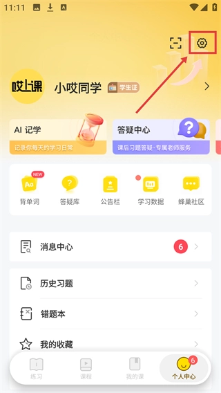 2、进入【个人中心】页面后,点击右上角【设置】图标,即可进入设置界面。