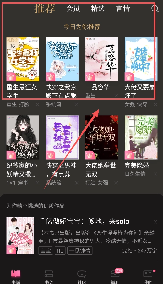 2、找书时不妨多关注首页的推荐板块,系统会根据你的阅读习惯智能推送类似重生最狂女学生这样的作品。