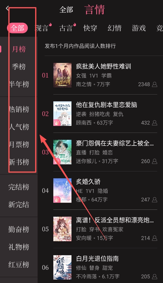 3、书城里的各类排行榜单很有参考价值,月榜展示近期热门作品,季榜收录长期优质好书,这些榜单能帮你快速发现精品小说。