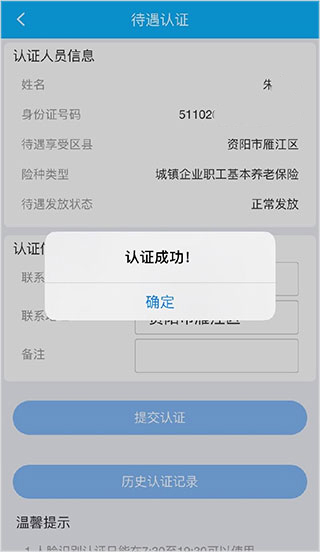 8、若显示认证成功,可在页面下方查询历史认证记录。