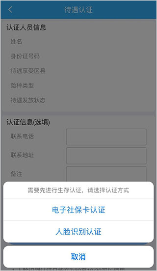 6、随后点击人脸识别认证(若认证方式选择“电子社保卡认证”,则需先申领电子社保卡)