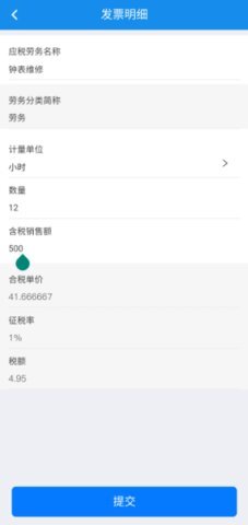 4、填好发票明细后,点击页面下方的【提交】按钮。