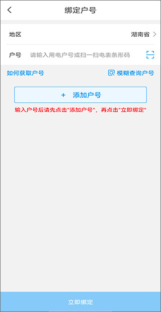 4、请选择您所处的省市地区,并准确输入用电户号,以完成绑定。