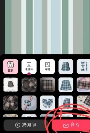 5、随后打开格子酱,点击“套炳图”,接着点击找到刚刚修剪好的格裙,点击“保存”,这样一条崭新的格裙就制作完成咯!