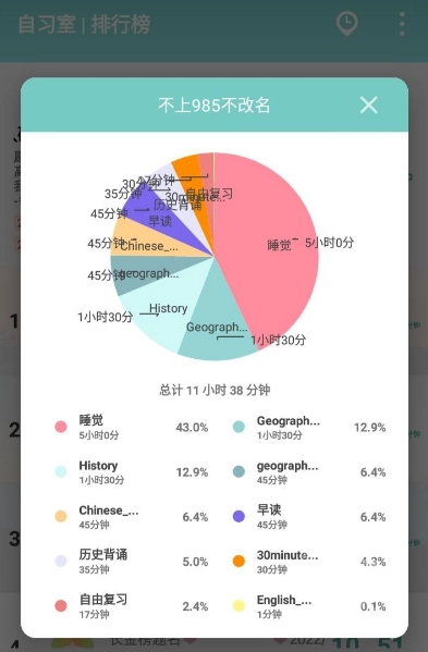 和朋友一起加入自习室,彼此陪伴着为目标奋斗,还能互相比拼专注时长,随时查看各自的专注分布情况。