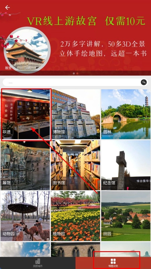 在特色分类板块中,点击【非遗 - 分类图标】,即可进入对应的相关场景页面。