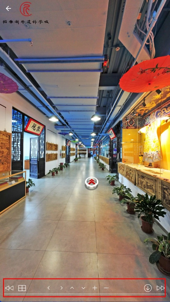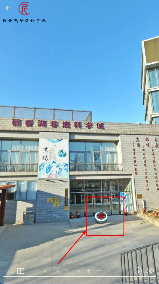 进入场景页面后,点击前进标识,就能进入建筑内部进行查看。