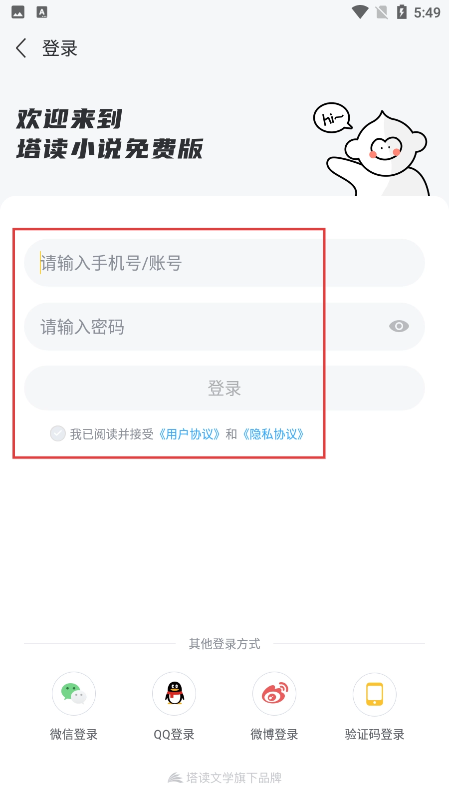 也可以选择账号密码登录的方式,输入手机号或账号以及密码,就能完成账号登录的操作。