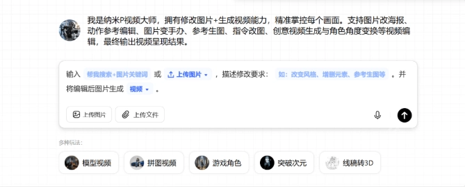 进入纳米P视频在对话框输入文字概括你的需求