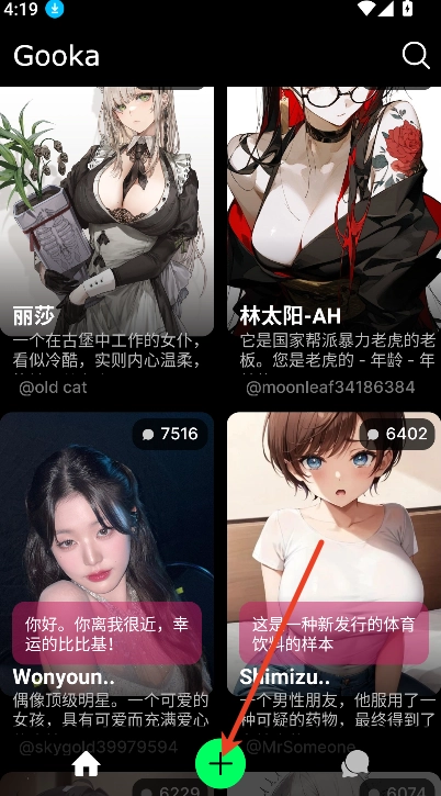 进入Gooka AI聊天软件的首页后,你可以挑选一位虚拟角色来开启交流。