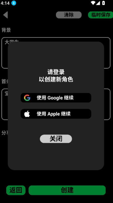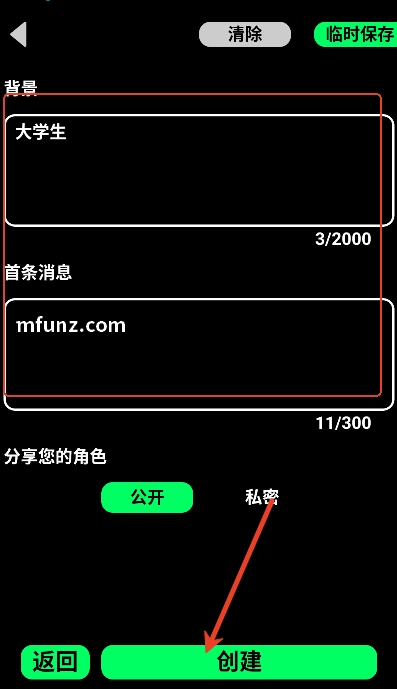 最后输入背景和其他信息即可创建角色