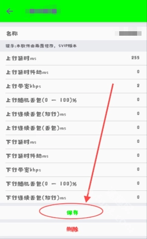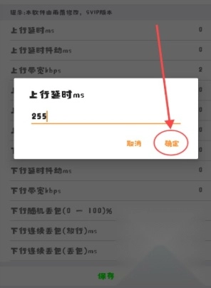 支持对上行/下行延迟(毫秒)、带宽(千比特每秒)、随机丢包率(百分比)等参数进行调整