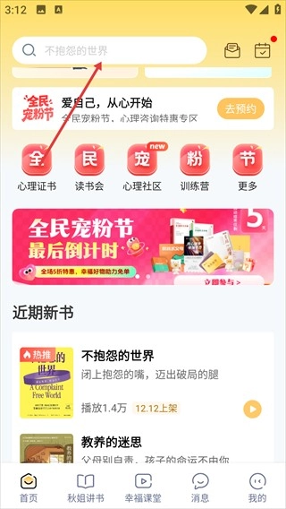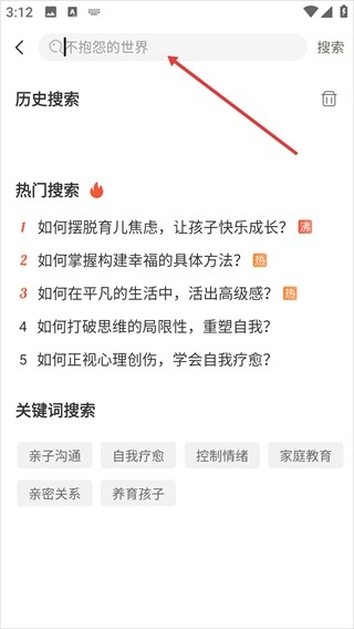 1、在首页,点击顶部搜索栏,进入搜索页面。