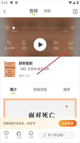 4、进入书籍详情页,点击【】按钮,完成音频操作。