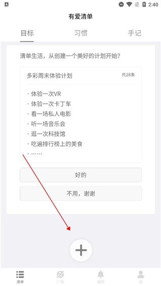 有爱清单是一款功能实用、内容有趣的清单愿望,用户可以通过软件发掘设立自己的目标,通过打卡记录的方式将目标一步步完成,养成良好心态,避免虚度光阴,非常适合想要养成自律习惯的小伙伴使用。