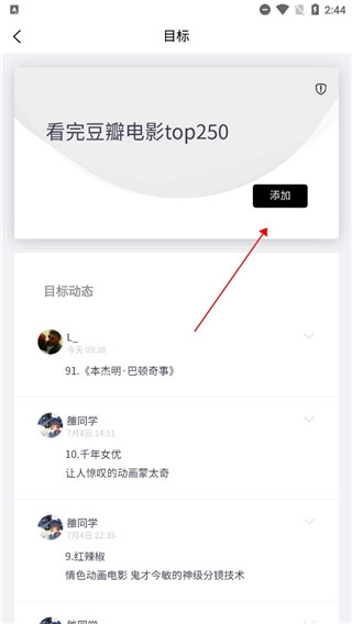 2、可以为用户推荐一些热门目标,点击一个目标就可以快速添加。