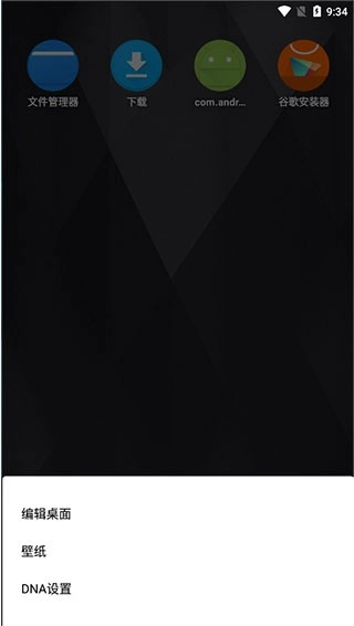 3、在桌面长按后,会弹出编辑桌面、壁纸、DNA设置等功能选项。