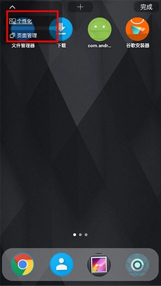 5、这时你可以进行个性化和页面管理对桌面设置。